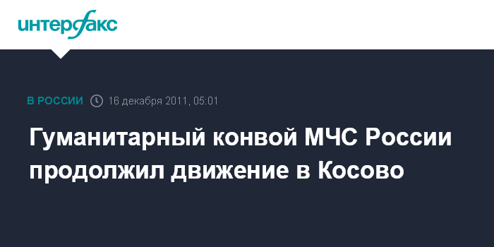 Колонна российских грузовиков с гуманитарной помощью для косовских сербов более двух суток находилась на административной границе Косово с центральной частью Сербии, так как представители миссии ЕС в Косово настаивали на сопровождении российского конвоя.