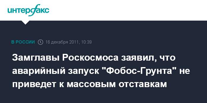 Замглавы Роскосмоса заявил, что аварийный запуск "Фобос-Грунта" не приведет к массовым отставкам