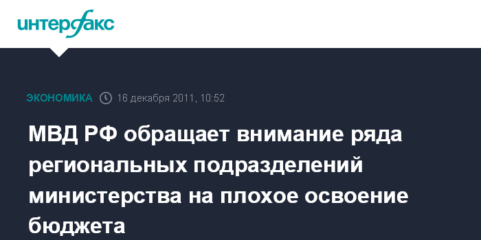 МВД РФ обращает внимание ряда региональных подразделений министерства на плохое освоение бюджета