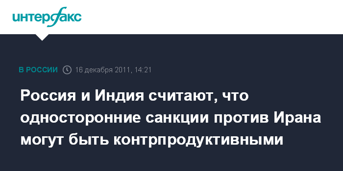 Россия и Индия считают, что односторонние санкции против Ирана могут быть контрпродуктивными