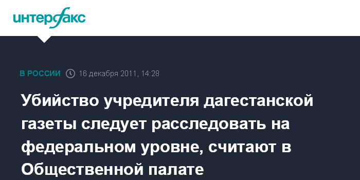 Убийство учредителя дагестанской газеты следует расследовать на федеральном уровне, считают в Общественной палате