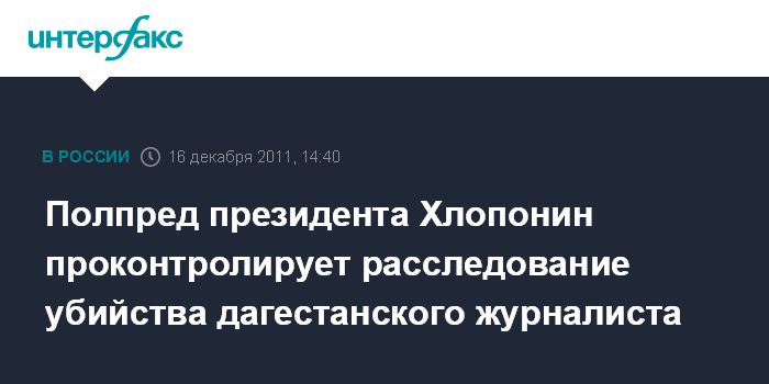 Полпред президента Хлопонин проконтролирует расследование убийства дагестанского журналиста