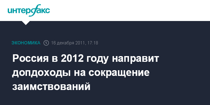 Россия в 2012 году направит допдоходы на сокращение заимствований