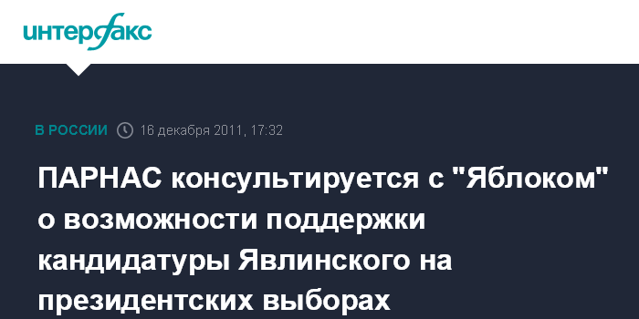 "В этой связи состоялись консультации о возможной поддержке ПАРНАСом кандидатуры Явлинского на предстоящих выборах", - подчеркнул сопредседатель незарегистрированной оппозиционной партии.