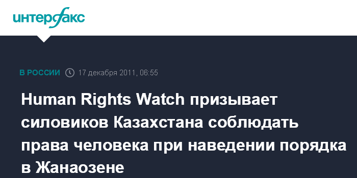 Алма-Ата. 17 декабря. ИНТЕРФАКС-КАЗАХСТАН - Международная правозащитная организация Human Rights Watch (HRW, наблюдение за правами человека) призвала правоохранительные структуры Казахстана соблюдать права человека при наведении порядка в городе Жанаозене Мангистауской области.
