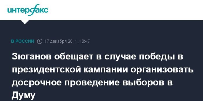 Зюганов обещает в случае победы в президентской кампании организовать досрочное проведение выборов в Думу