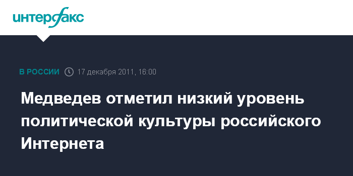 Медведев отметил низкий уровень политической культуры российского Интернета