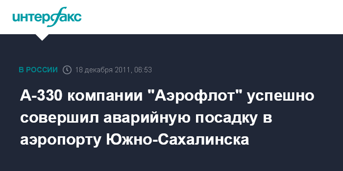 А-330 компании "Аэрофлот" успешно совершил аварийную посадку в аэропорту Южно-Сахалинска