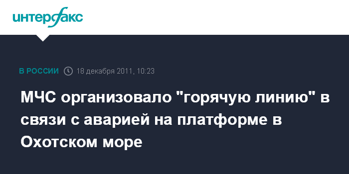 Южно-Сахалинск. 18 декабря. INTERFAX.RU - В связи с аварией буровой платформы в Охотском море работают телефоны "горячей линии" Главного управления МЧС России по Сахалинской области - 8 (4242) 72-99-99, 49-70-24.