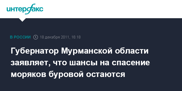 Губернатор Мурманской области заявляет, что шансы на спасение моряков буровой остаются