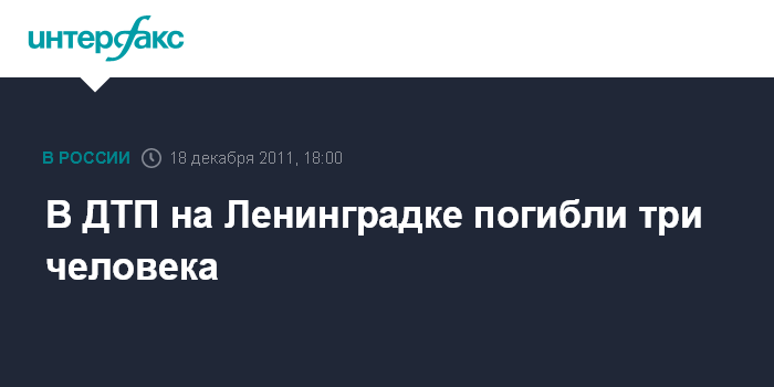 Москва.18 декабря. INTERFAX.RU - Три человека погибли в ДТП на севере Подмосковья, сообщил "Интерфаксу" источник в правоохранительных органах. "Около 16 часов на 68-м километре Ленинградского шоссе произошло лобовое столкновение автомобилей ВАЗ-2107 и ВАЗ-2111, в результате которого три человека от полученных травм скончались на месте", - сказал собеседник агентства. Он добавил, что еще три человека были госпитализированы, состояние одного из них оценивается как крайне тяжелое.
