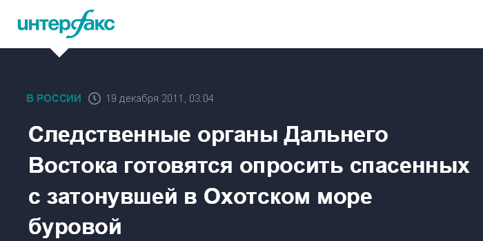 "Во вторник запланирован опрос членов экипажа буксира "Нефтегаз-55, который, как ожидается, 20 декабря прибудет в Корсаков. На его борту - девять спасенных с затонувшей буровой. Их также опросят", - сказала Н.Салкина.
