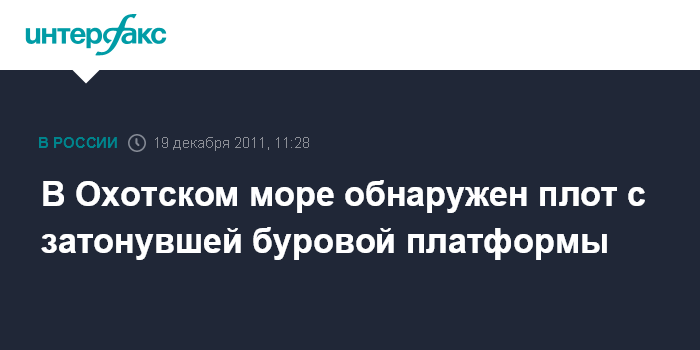 В Охотском море обнаружен плот с затонувшей буровой платформы