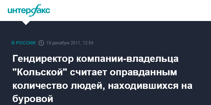 Гендиректор компании-владельца "Кольской" считает оправданным количество людей, находившихся на буровой