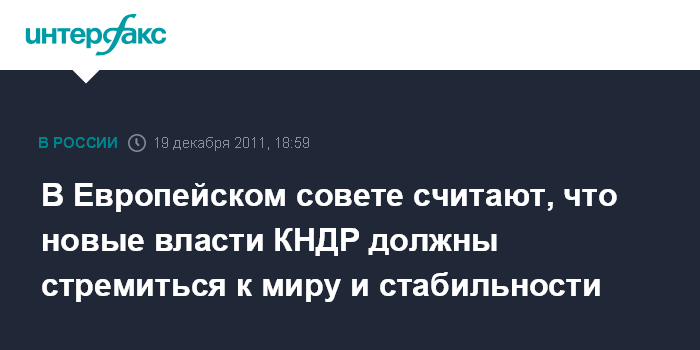"ЕС внимательно следит за ситуацией (в КНДР - ИФ). Мы рассчитываем на то, что будущее руководство Северной Кореи будет стремиться к достижению мира и стабильности на Корейском полуострове", - цитирует ван Ромпея, находящегося с визитом в Киеве, французская газета Le Figaro.