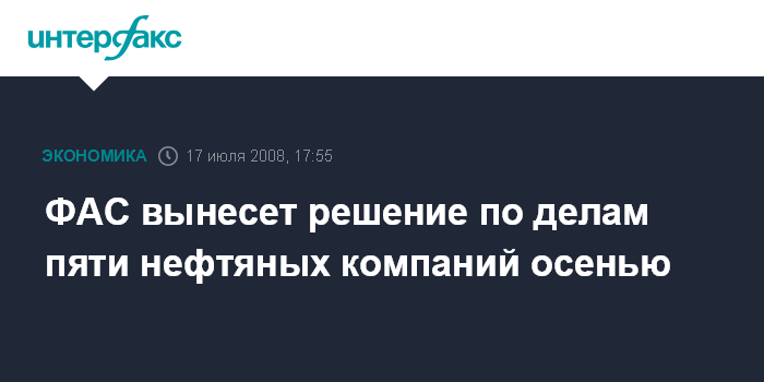 ФАС вынесет решение по делам пяти нефтяных компаний осенью