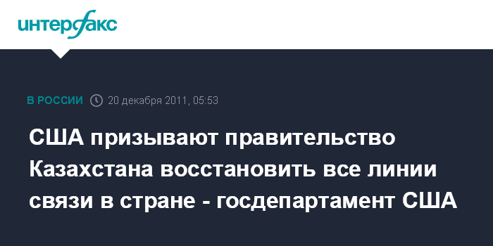 США призывают правительство Казахстана восстановить все линии связи в стране - госдепартамент США