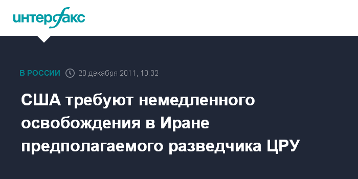 Лондон. 20 декабря. INTERFAX.RU - Власти США потребовали, чтобы Тегеран без промедления отпустил на свободу предполагаемого разведчика ЦРУ Амира Мерзая Хекмати, сообщает во вторник британская телерадиокорпорация BBC со ссылкой на представителя госдепа.