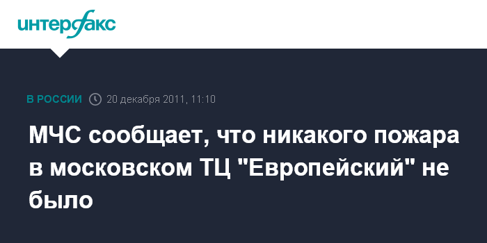 "Во вторник некоторые СМИ распространили информацию о задымлении над зданием торгового центра "Европейский" на западе Москвы. Эта информация не соответствует действительности", - сказали в пресс-службе.