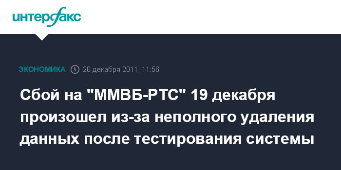Сбой на "ММВБ-РТС" 19 декабря произошел из-за неполного удаления данных после тестирования системы