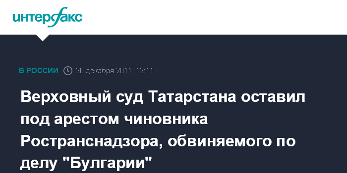 Верховный суд Татарстана оставил под арестом чиновника Ространснадзора, обвиняемого по делу "Булгарии"
