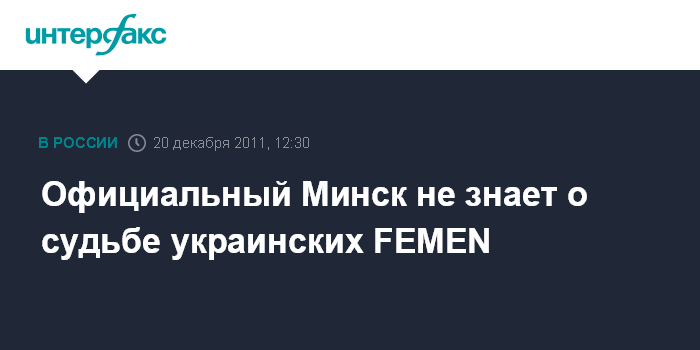 Киев. 20 декабря. INTERFAX.RU - Министерство иностранных дел Белоруссии пока не подтверждает задержание активисток украинского движения FEMEN, сообщил агентству "Интерфакс-Украина" пресс-секретарь украинского внешнеполитического ведомства Александр Дикусаров.