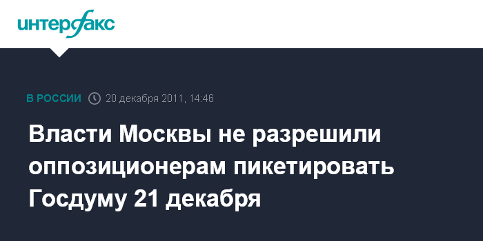 Власти Москвы не разрешили оппозиционерам пикетировать Госдуму 21 декабря