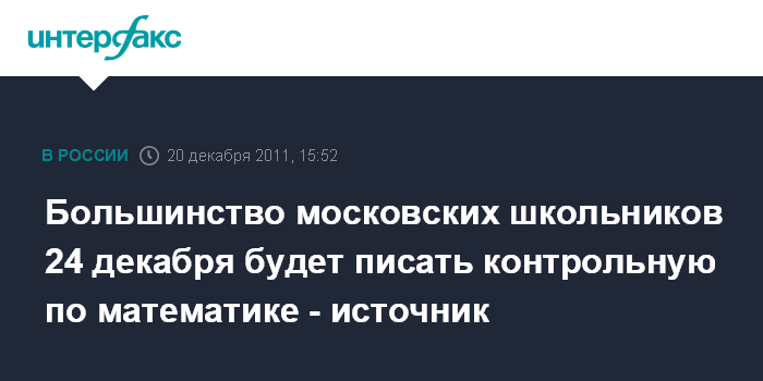 Ранее в департаменте образования "Интерфаксу" сообщили, что общегородская контрольная по математике для старшеклассников состоится 17 или 24 декабря.