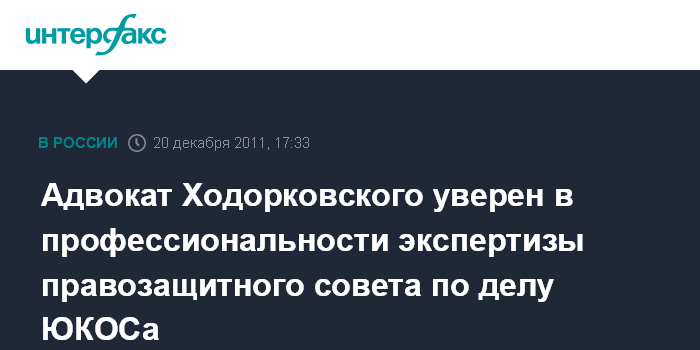 Адвокат Ходорковского уверен в профессиональности экспертизы правозащитного совета по делу ЮКОСа