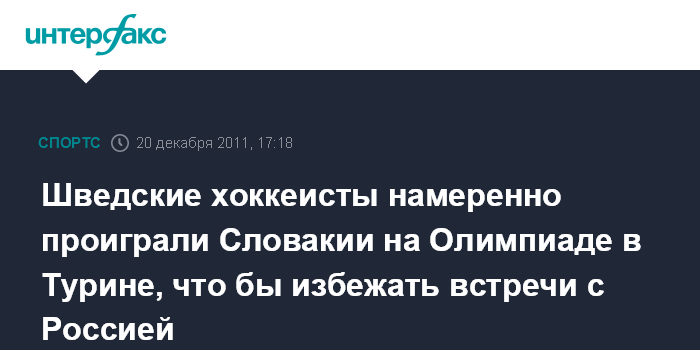 Шведские хоккеисты намеренно проиграли Словакии на Олимпиаде в Турине, что бы избежать встречи с Россией