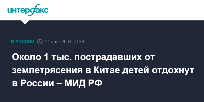 Около 1 тыс. пострадавших от землетрясения в Китае детей отдохнут в России – МИД РФ