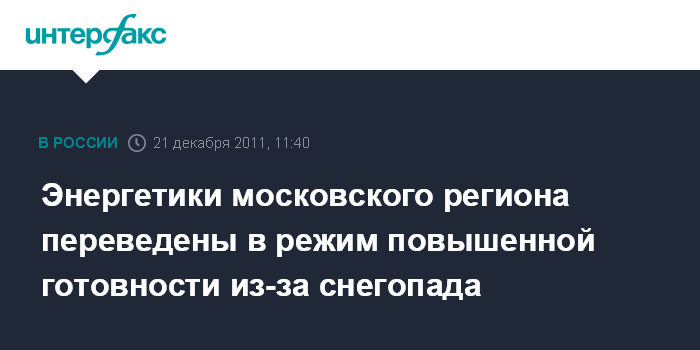 Энергетики московского региона переведены в режим повышенной готовности из-за снегопада
