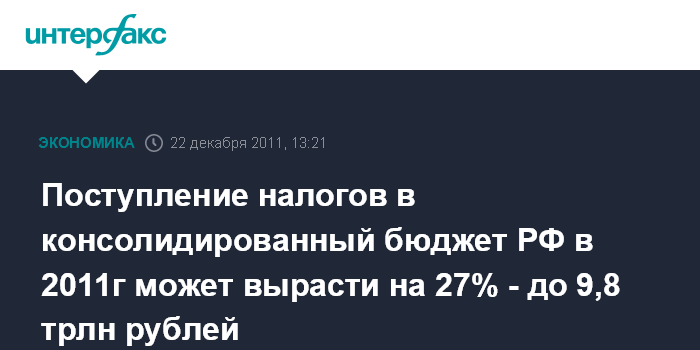 Поступление налогов в консолидированный бюджет РФ в 2011г может вырасти на 27% - до 9,8 трлн рублей