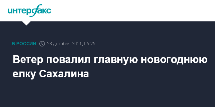 Южно-Сахалинск. 23 декабря. ИНТЕРФАКС-ДАЛЬНИЙ ВОСТОК - Сильный ветер в Южно-Сахалинске повалил главную елку острова, установленную ранее на центральной площади областного центра.
