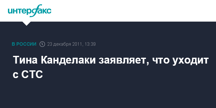 Москва. 23 декабря. INTERFAX.RU – Телеведущая Тина Канделаки заявила, что больше не собирается продолжать работу на телеканале СТС.