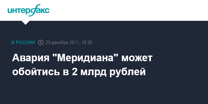 Авария "Меридиана" может обойтись в 2 млрд рублей