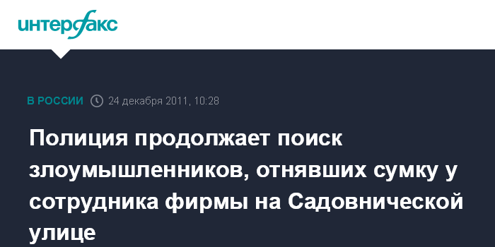 Полиция продолжает поиск злоумышленников, отнявших сумку у сотрудника фирмы на Садовнической улице