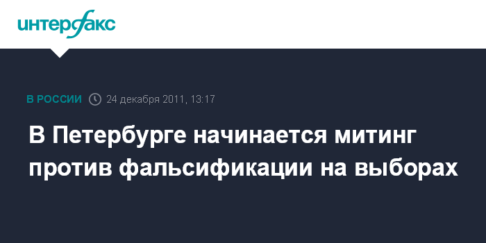 Санкт-Петербург. 24 декабря. INTERFAX.RU - Санкционированный митинг против фальсификации на прошедших выборах проходит в северной столице, передает корреспондент "Интерфакса".