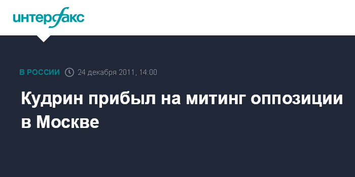 Москва. 24 декабря. INTERFAX.RU - Бывший министр финансов России Алексей Кудрин прибыл на митинг оппозиции "За честные выборы" на проспекте Сахарова в центре Москвы, передает корреспондент "Интерфакса" с места событий.