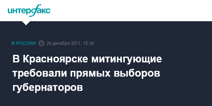 Красноярск. 24 декабря. INTERFAX.RU - В Красноярске в субботу прошел митинг "За честные выборы", собравший, по данным правоохранителей, 500 человек, сообщил корреспондент агентства "Интерфакс-Сибирь". По данным организаторов, на Красной площади Красноярска собралось 2,5 тысячи человек. Митинг бы разрешен местными властями.