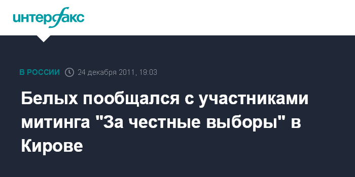 Глава департамента информационной работы Кировской области Борис Веснин подтвердил агентству, что Н.Белых присутствовал на митинге, отвечал на вопросы жителей города.