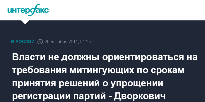 Власти не должны ориентироваться на требования митингующих по срокам принятия решений о упрощении регистрации партий - Дворкович