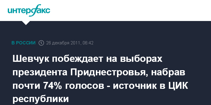 Шевчук побеждает на выборах президента Приднестровья, набрав почти 74% голосов - источник в ЦИК республики