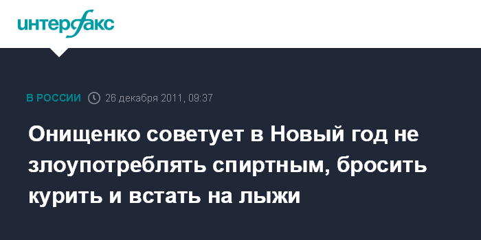 Онищенко советует в Новый год не злоупотреблять спиртным, бросить курить и встать на лыжи