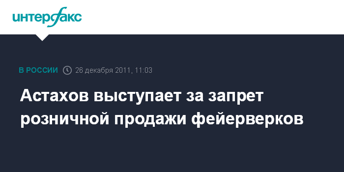 Москва. 26 декабря. INTERFAX.RU - Уполномоченный при президенте РФ по правам ребенка Павел Астахов призвал отказаться от использования пиротехники в новогодние праздники.
