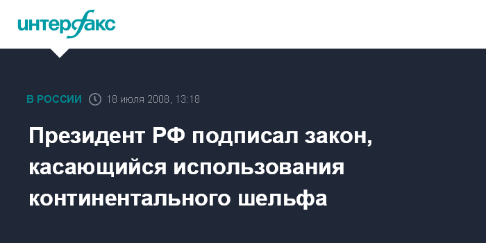Президент РФ подписал закон, касающийся использования континентального шельфа