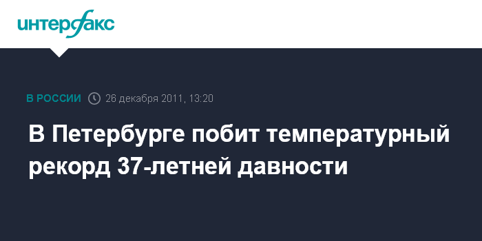 Санкт-Петербург. INTERFAX.RU - В северной столице побит температурный рекорд, сообщили "Интерфаксу" в Гидрометцентре города в понедельник.