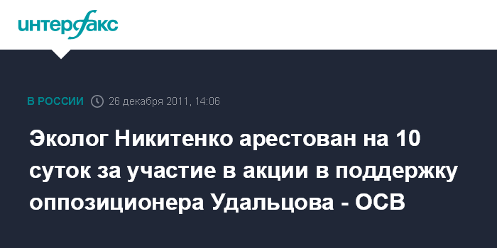 Эколог Никитенко арестован на 10 суток за участие в акции в поддержку оппозиционера Удальцова - ОСВ