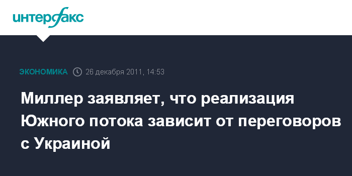 Москва. 26 декабря. INTERFAX.RU - Реализация проекта строительства газопровода "Южный поток" зависит от переговоров с Украиной, заявил Агентству газовой информации (АГИ) глава "Газпрома" Алексей Миллер.