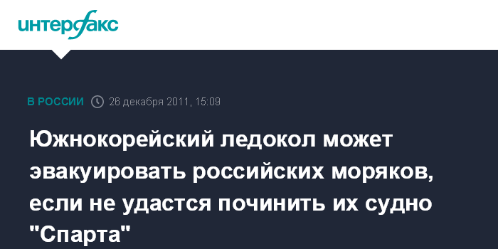 Южнокорейский ледокол может эвакуировать российских моряков, если не удастся починить их судно "Спарта"